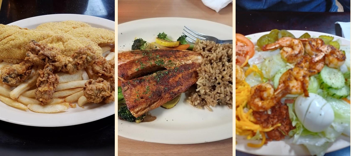 Popular seafood dishes include the Crawfish Etouffee and the Fried Seafood Platters. Both showcase local flavors and seafood.